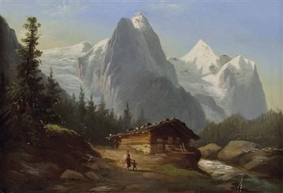 Im Hochgebirge mit Hütte und Personenstaffage