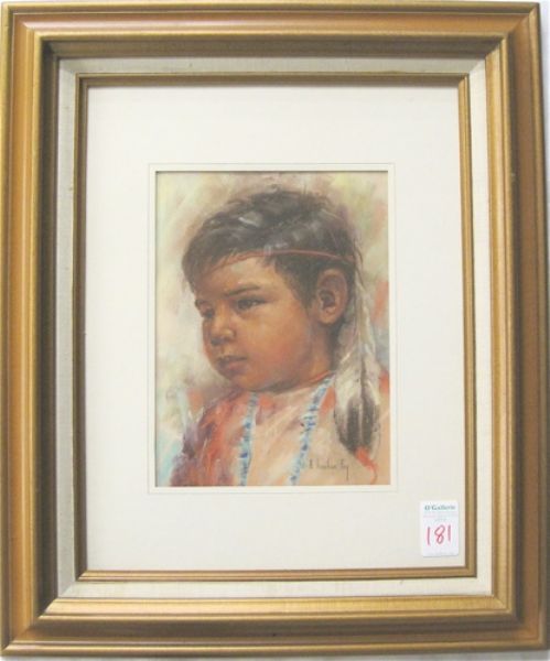 Portrait of a Native American boy with a feather in his hair