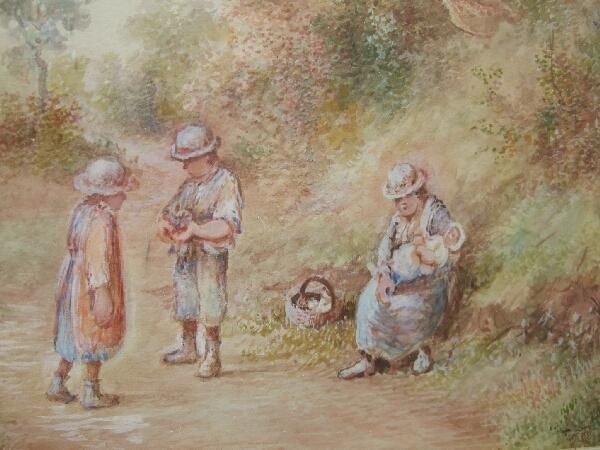'A Rest By the Way?' study of figures on a wooded track
