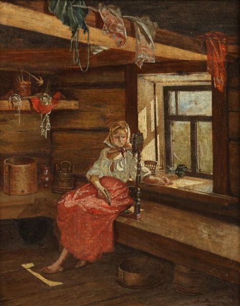 WOMAN SPINNING THREAD