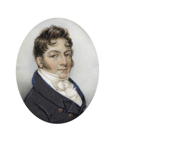 | A Gentleman, said to be Joseph Colyer (1748-1827), wearing blue double-breasted coat, white waistcoat, frilled chemise and tied | |