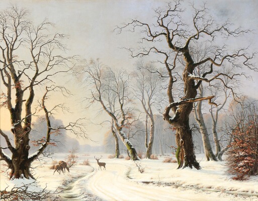 Deer in the Dyrehaven Park on a winter day