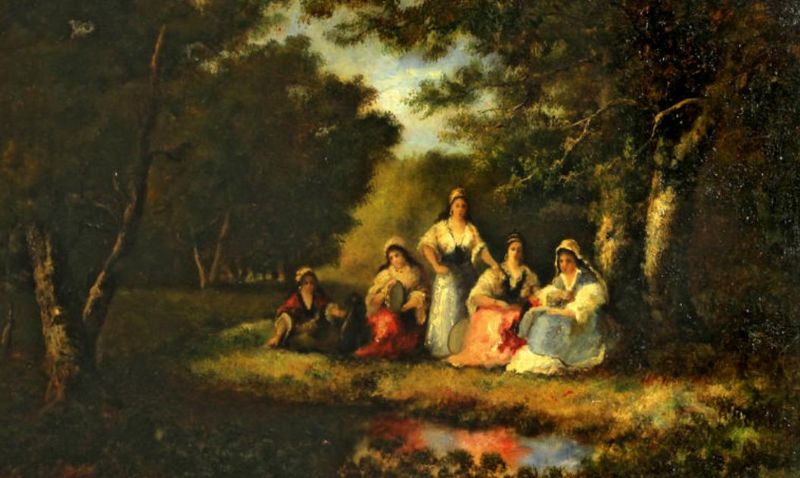 Gypsy women in a forest interior