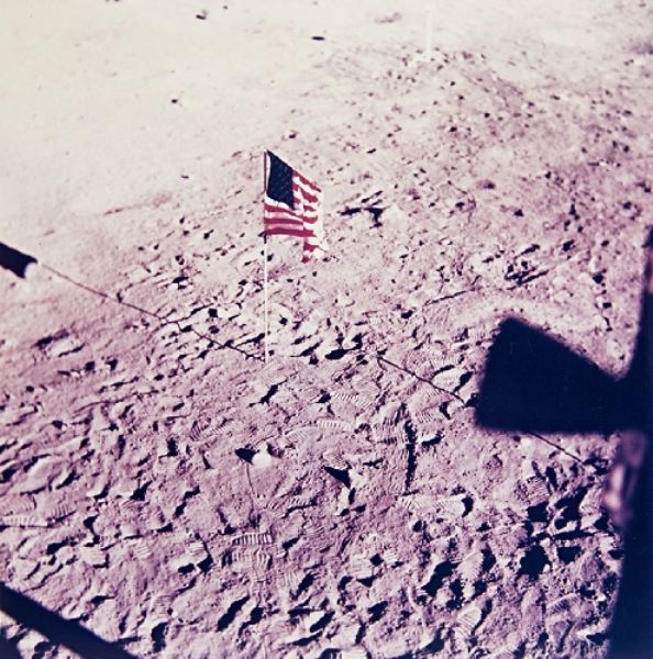 THE FLAG OF THE UNITED STATES, DEPLOYED ON THE SURFACE OF THE MOON, APOLLO 11