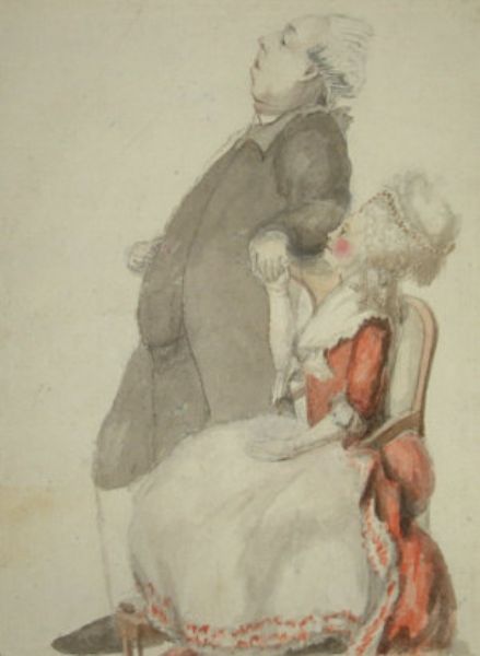 Caricature of Gentleman and seated lady
