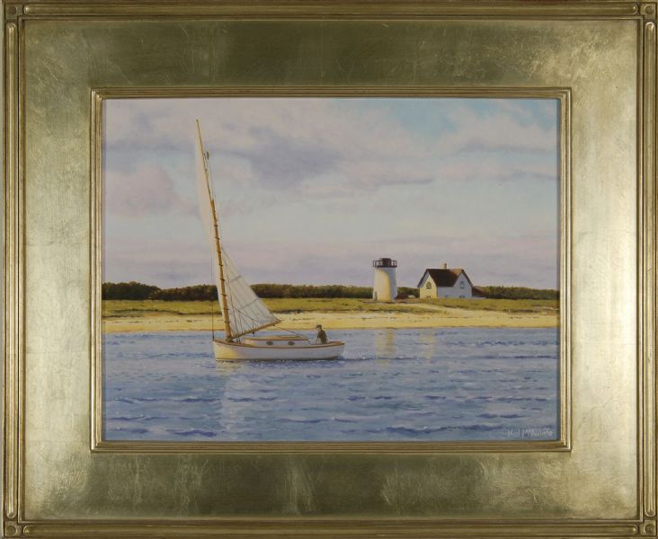 Catboat off Hardings Beach Lighthouse, Chatham.