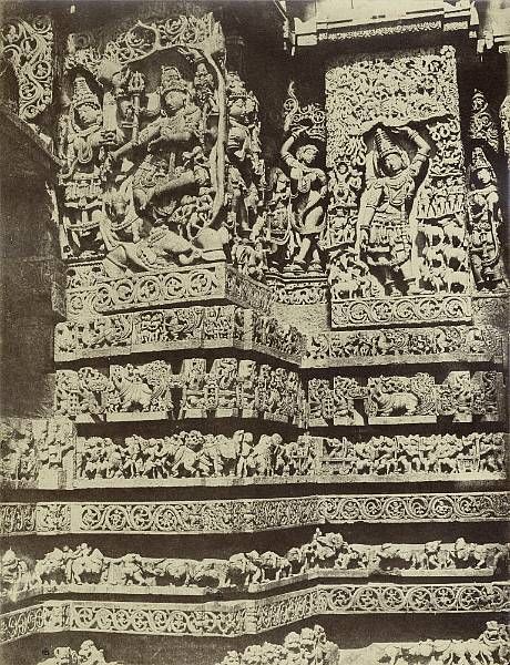Two studies of sculptures on the west front of the Great Temple at Halebidu, 1866