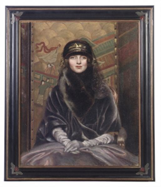 | Portrait of a lady, seated half-length, in a deep purple velvet coat before a Chinoiserie screen | |
