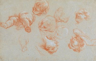 | A study sheet with legs and heads of putti | |