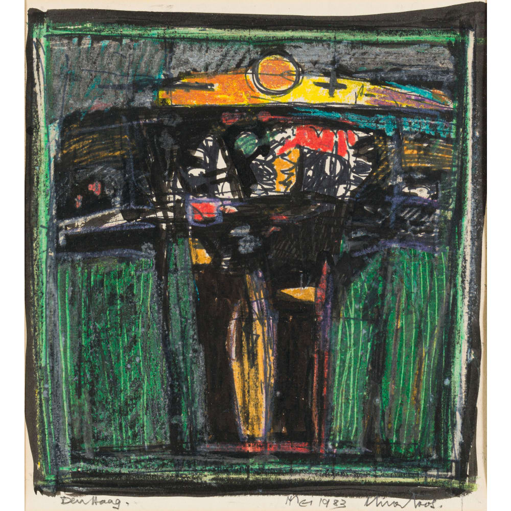 78,5 by 91,5 by 7cm including frame; inscribed with the artist's name and the title on a plaque pinned to the frame | |