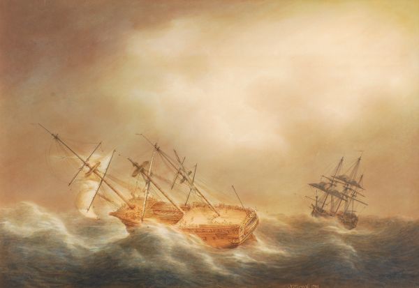 Man O' War being wrecked in rough seas