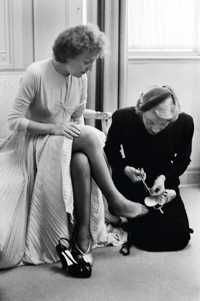 | New York. Edith Piaf épouse Jacques Pills. Agenouillée devant la future mariée, Marlene Dietrich, son témoin, perce de nouveaux | |