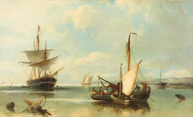 Küstenlandschaft mit Dreimaster und Segelbooten