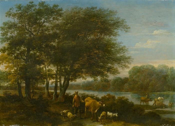 | Bewaldete Landschaft mit einem Hirten und seinem Vieh | |