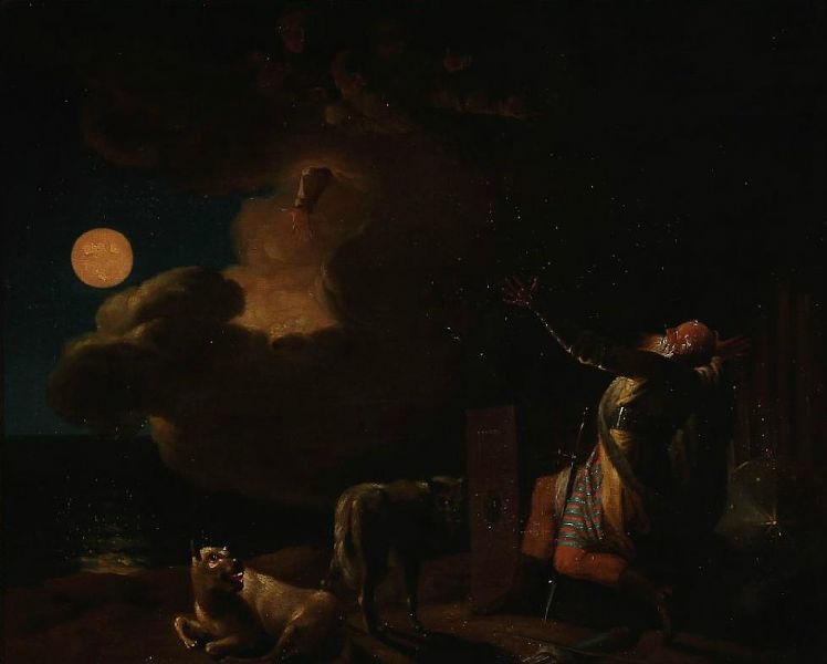 | Fingal sees the ghosts of his ancestors in the moonlight. Motif from Ossian's poems. | |