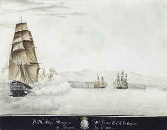 | H.M.S. Warspite engaging two Egyptian corvettes at Navarino | |