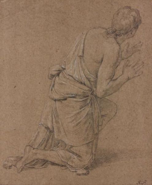 Figure drapée agenouillée, pour le Christ servi par les anges