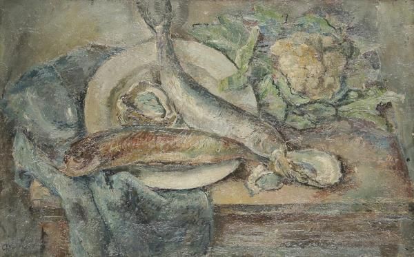 | Nature morte aux poissons (esquisse d’un intérieur au verso de la toile) | |