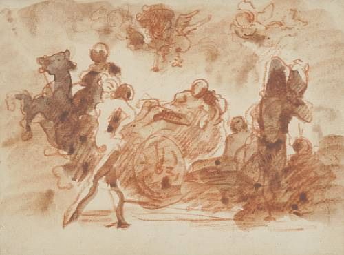 Chalk red chalk with brown and red wash on paper