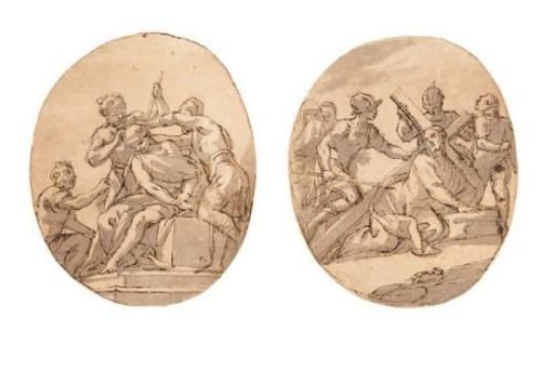 | Deux dessins: un couronnement d'épines et un portement de croix sur le même montage | |