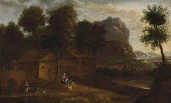 Landschaft mit Architektur- und Figurenstaffage