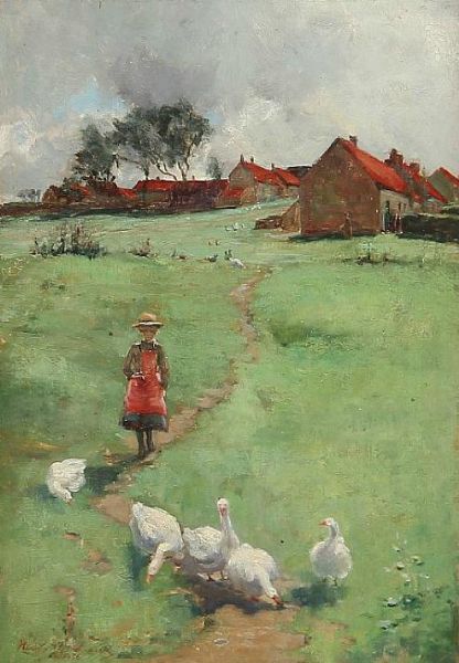 A British landscape with a girl and geese
