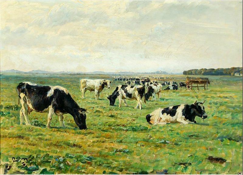 Landscape with grassing cows