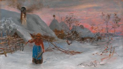 Gathering Brushwood in a Village Deep in Snow