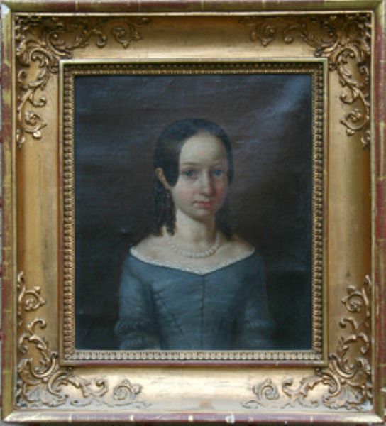 Porträtt av flicka i blå klänning