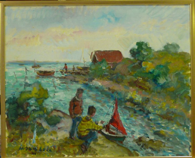 Pojkar med modellfartyg.