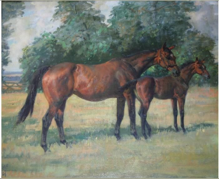| A THOROUGHBRED MARE AND FOAL, PROBABLY THE PROPERTY OF LORD STALBRIDGE | |
