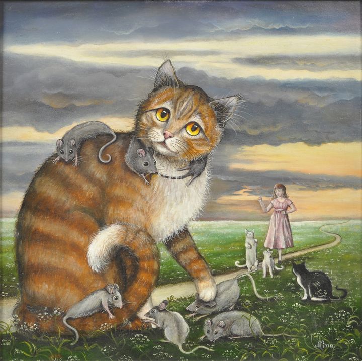 Bad Reichenhall "Mäuseboa" (Katze mit Mäusen, im Hintergrund Mädchen)