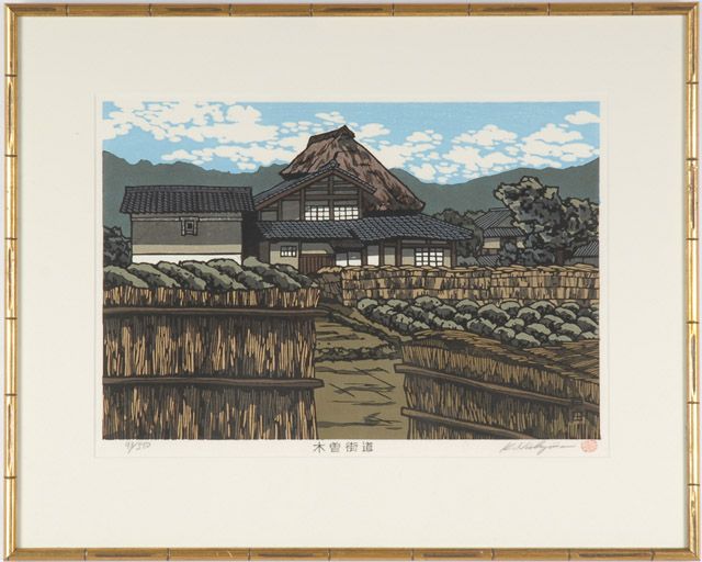 | Landscape with row crops with lighted house in Nara Prefecture. | |