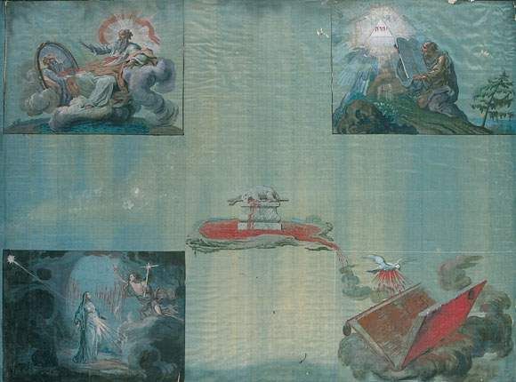 | L'agneau immolé, Dieu le Père, Moïse recevant les Tables de la Loi, La Sainte Vierge, Le Saint Esprit | |