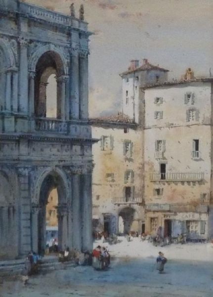 An Italian townscape with figures