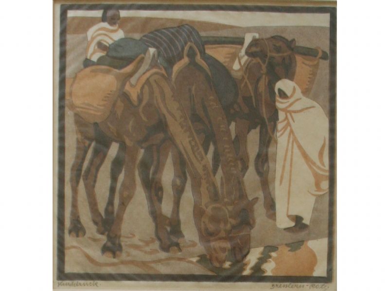(ARABS WITH CAMELS AT AN OASIS)
