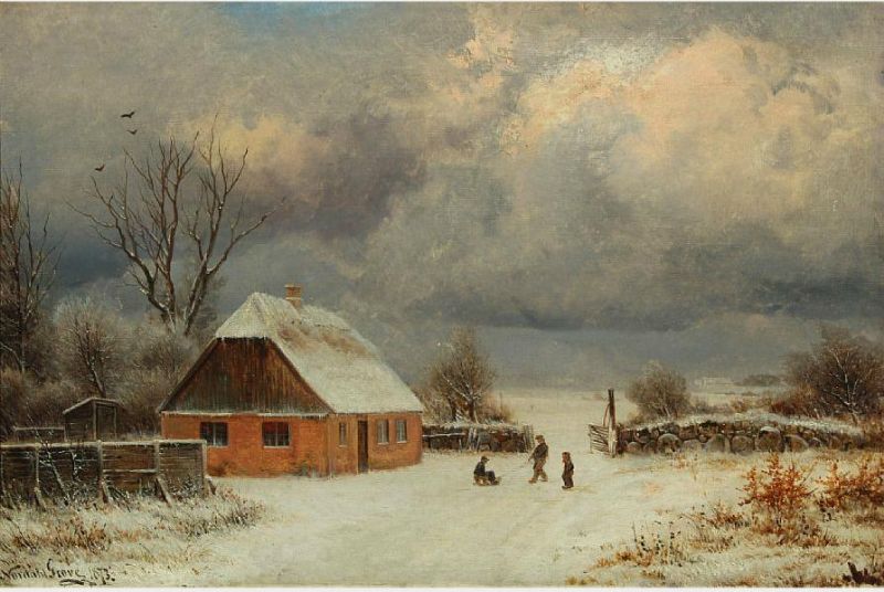 | Winter day with children playing in front of a farmhouse | |