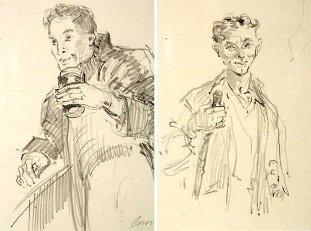 a pair of portrait sketches