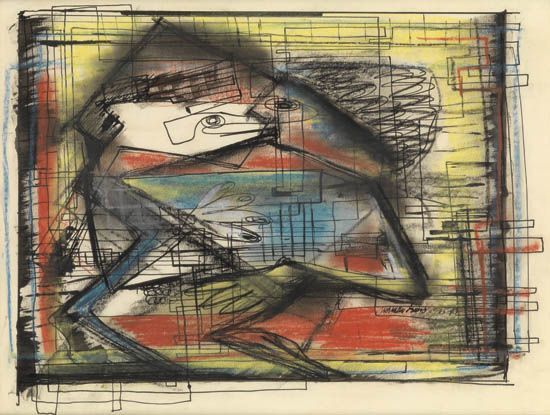 | Pastel Color pastel crayons, wash, pen and ink | |