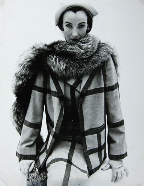 | Wenda in check jacket & fur stole, in london collections, vogue, march 1951 | |
