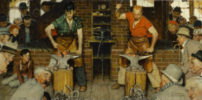 BLACKSMITH’S BOY – HEEL AND TOE (SHAFTSBURY BLACKSMITH SHOP; “I’LL NEVER FORGET THAT LAST HOUR. AND NEVER, I IMAGINE, WILL ANY OF THOSE WHO WATCHED. BOTH MEN WERE LOST TO EVERYTHING NOW BUT THE SWING FROM THE FORGE TO THE ANVIL, THE HEELS TO BE TURNE | |