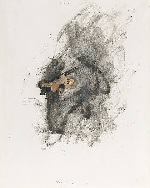 Acrylic oil stick and coral on paper