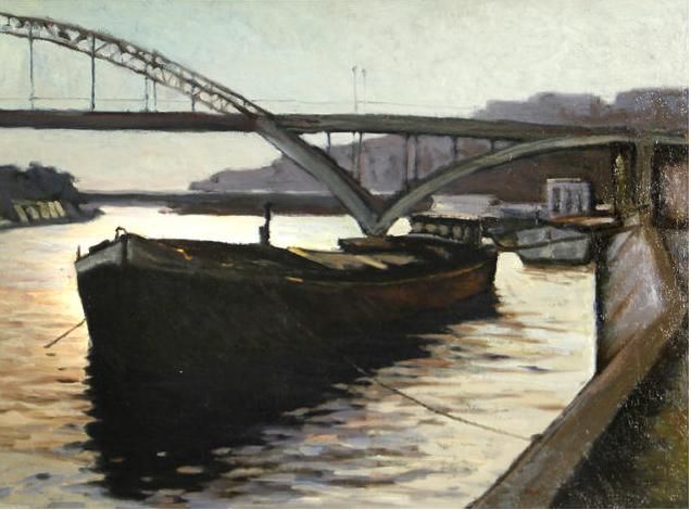 Barge at sunset