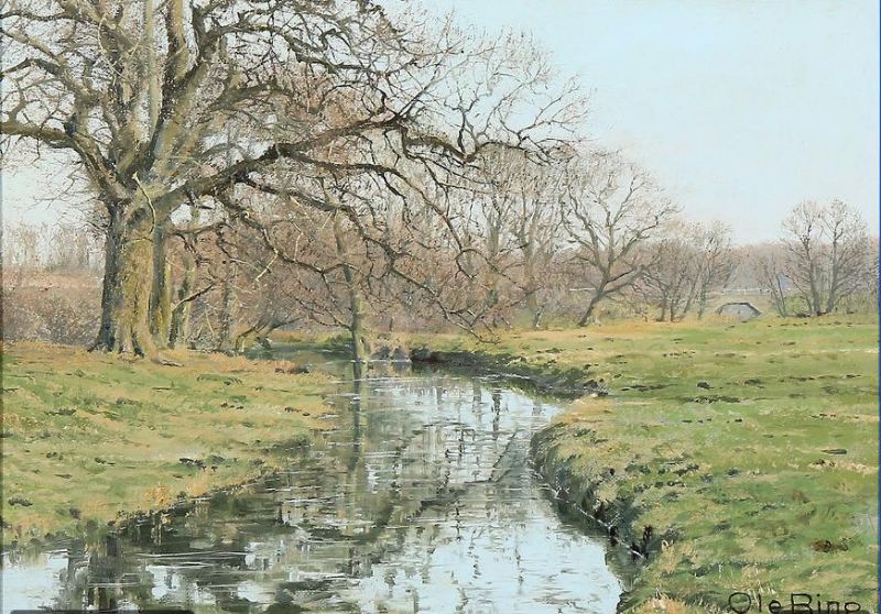 Landscapes with oaktrees near a stream.