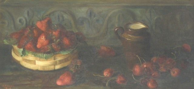 Still life of Strawberries, Cherries and a Stoneware jug