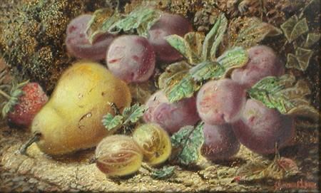 A STILL LIFE OF FRUIT ON A MOSSY BANK