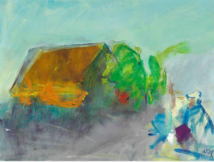 | The painter at the easel, presumably the garden at Norresân, Gudhjem. | |