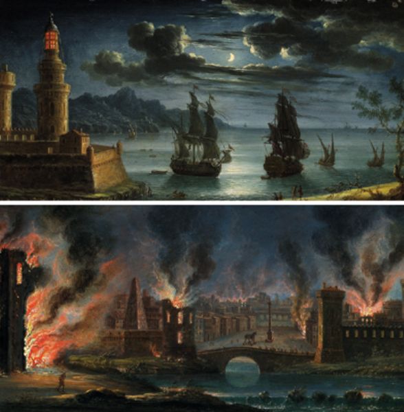 | The Fall of Troy; Nocturnal port scene with a lighthouse, pendants | |