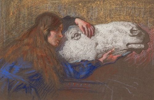 GIRL WITH CAST OF A CLASSICAL HORSE'S HEAD