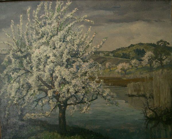 | Ansässig in München. Die Apfelblüte am Bodensee mit Blick auf den Weiher bei Meersburg. | |